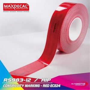 Stiker reflektor CONSPICUITY merk MAX DECAL. Sudah terdapat logo ECE (E mark) dan R104 pada stikernya. Selain itu ujung atas bawah stiker ini juga sudah dilengkapi dengan edge-sealing technology sehingga meminimalisir debu dan air meresap masuk ke dalam reflektor. Sudah lulus uji standarisasi KIR DISHUB.