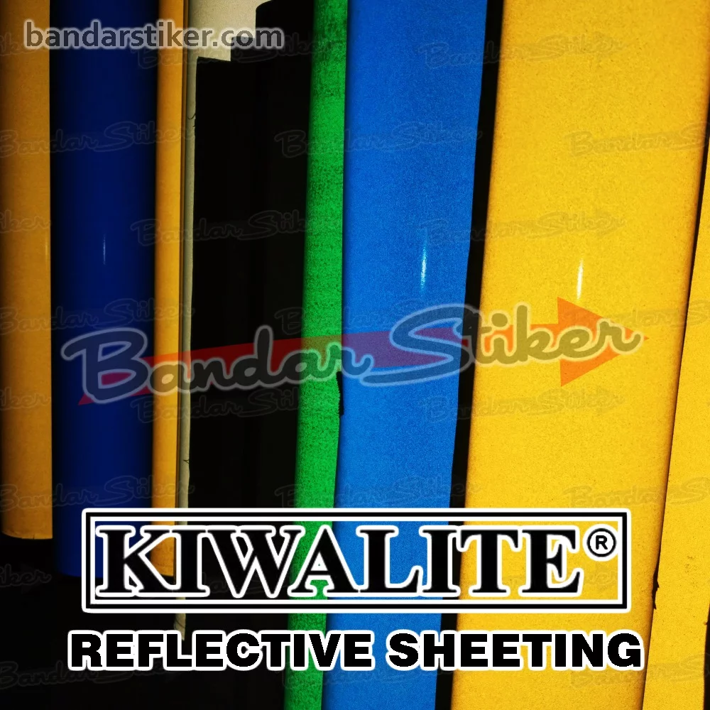 Stiker reflektif KIWALITE Safety Grade 9000 adalah reflective sheeting (scotchlite) yang dapat berkilau ketika tersorot seperti mata kucing yang dapat memantulkan cahaya. Sekotlait KIWALITE ini biasa digunakan untuk cutting sticker promosi logo atau branding, rambu jalan, papan peringatan, marka gedung/pagar, dan lain-lain. KIWALITE 9000 SG dengan lebar 120 cm memiliki kualitas cukup tinggi yang hampir setara dengan Scotchlite 3M 610 namun perbedaannya adalah KIWALITE memiliki jenis warna yang lebih banyak sehingga stiker ini menjadi pilihan dalam pembuatan branding warna-warni kualitas tinggi.
